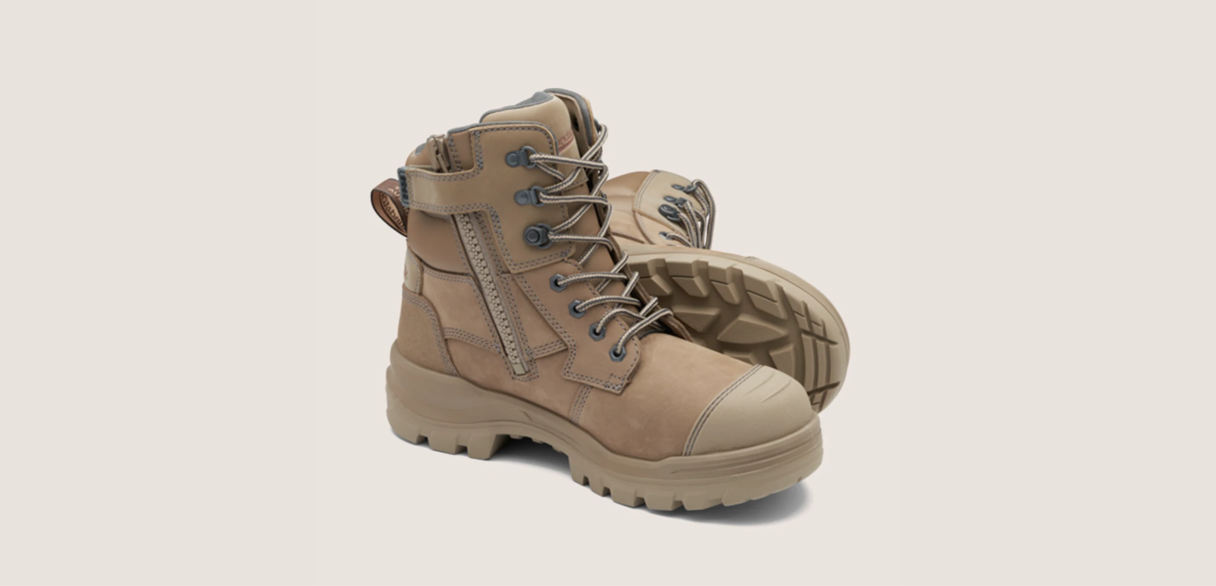 Blundstone Rotoflex 8063 Stone Zip Sided safety boot is equipped with an industrial grade zip for ease of access and SoftCell® technology to ensure a secure and comfortable fit.
