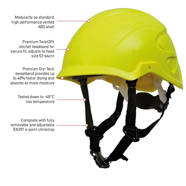 - Fully removable and adjustable EN397 or EN12492 4-point chinstrap and liner and liner accessories available